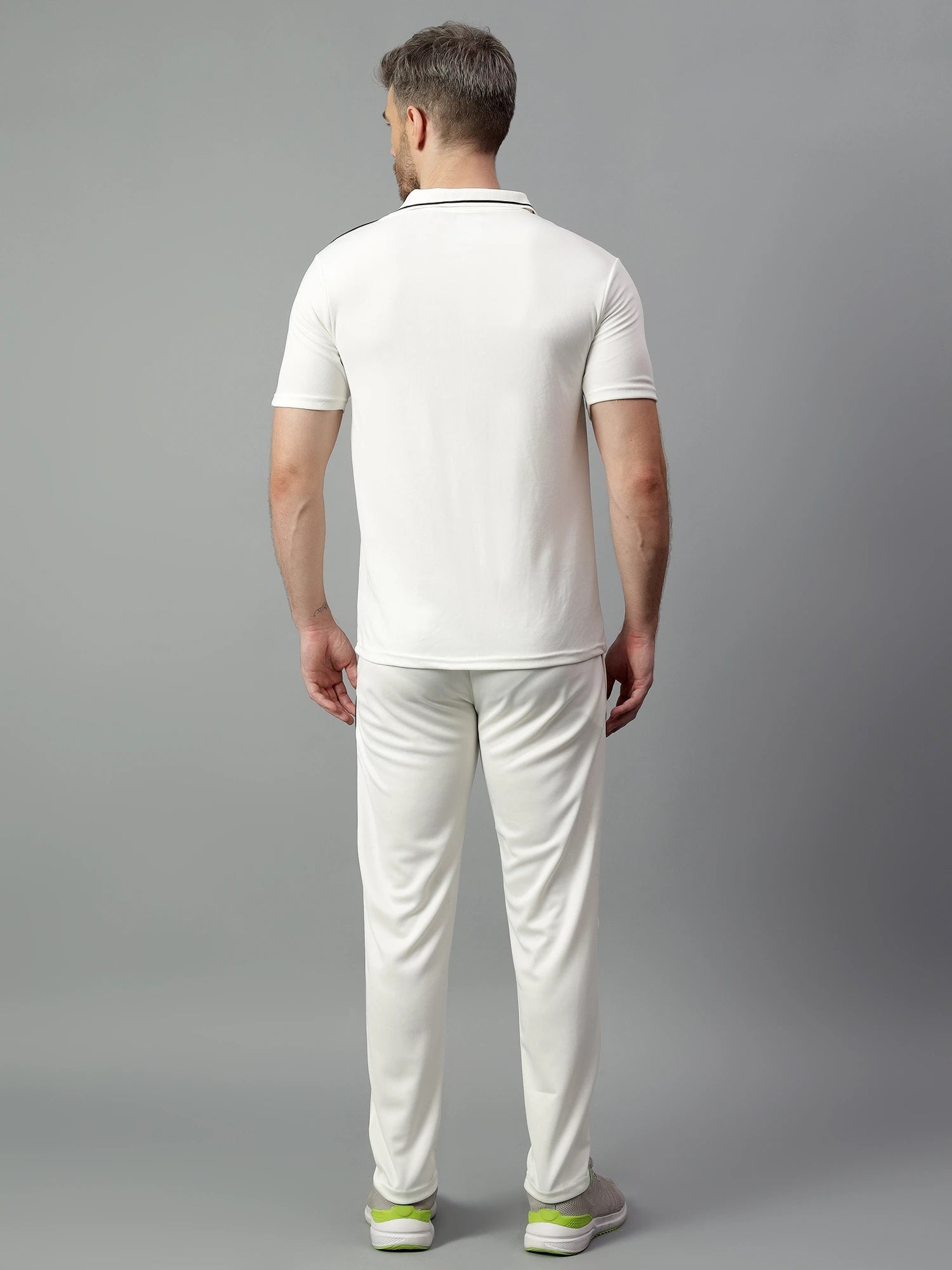 Exihibit your passion for Cricket with this Flat collared t-shirt and a pant set. Constructed from a soft knit fabric with quick wicking and breathability. Featuring Micro knit mesh material for Ventilation. This set will keep you dry and comfortable all day long.
